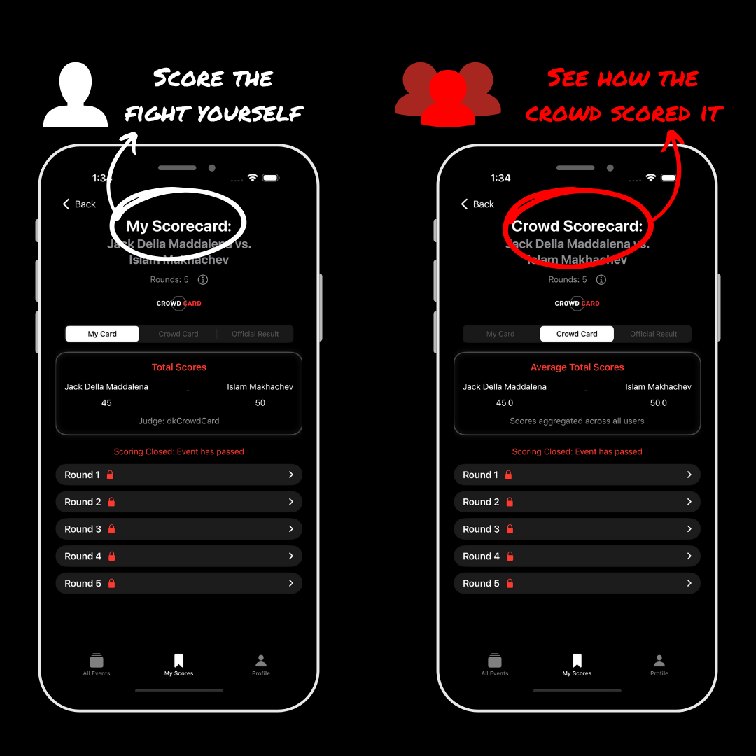 After the event, we will compile scores from all users to show the world how the crowd scored the event.